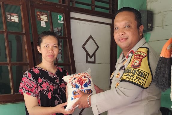 Sasar Warga Kurang Mampu, Bhabinkamtibmas Beri Bantuan Beras