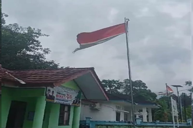 Miris!!! Bendera Merah Putih Sobek dan Kusam Berkibar di Halaman Kantor KUA Kecamatan Kaduhejo