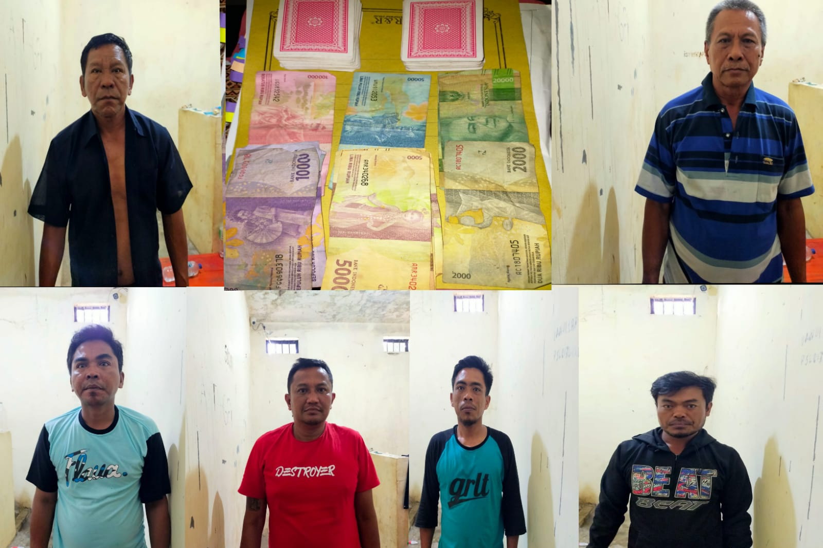 “Para ke 6 tersangka, diduga berkumpul dirumah salah satu warga, yang akan menggelar hajatan, kemudian bermain judi kartu Remi, dengan taruhan uang tunai.”ucapnya”