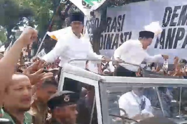 Kesiapan yang sama turut disampaikan Muhaimin. Setelah itu, Muhaimin langsung memasuki mobil yang sama dengan Anies, sambil keduanya melambaikan tangan ke istri-istri yang mengantarkan mereka sampai ke depan pintu mobil. “Siap, bismillah, bismillah,” ujar Muhaimin.