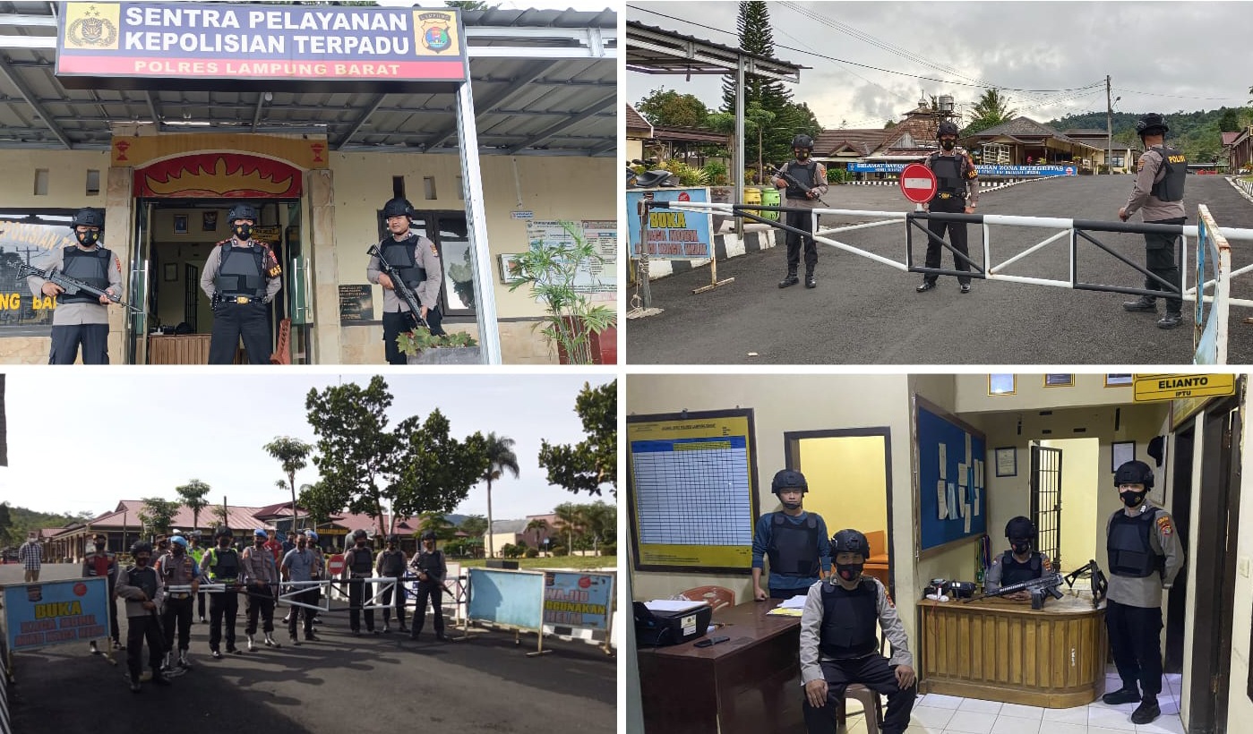 Adapun kegiatan peningkatan pengamanan terlihat di pos penjagaan pintu masuk Mako Polres Lampung Barat, anggota dengan bersenjata lengkap dan memakai rompi anti peluru untuk mengawasi setiap masyarakat yang datang.