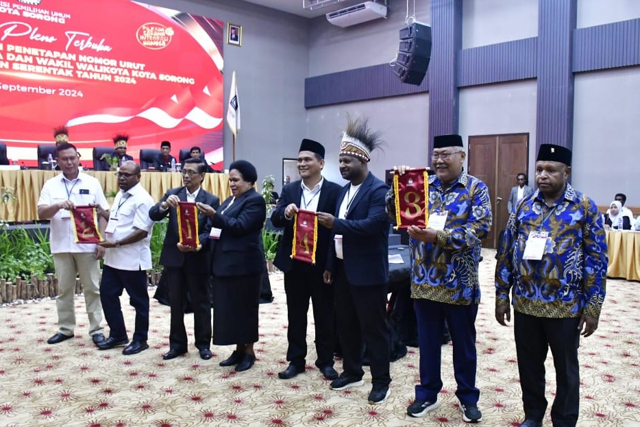 Pengundian nomor urut Kepala daerah Walikota dan Wakil Walikota sorong. Setelah dilakukan pengundian oleh KPU kota Sorong dan menetapkan 4 (empat) pasangan calon Walikota dan Wakil Walikota Sorong.