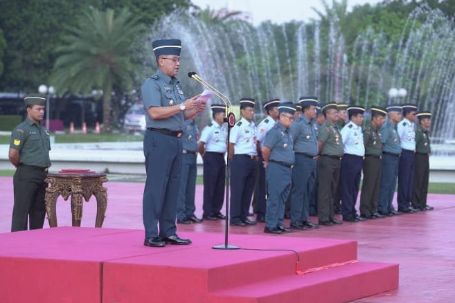 Demikian amanat Asops Panglima TNI Mayjen TNI Muhammad Nur Rahmad yang dibacakan Pa Sahli Tk. III Bid. Bantuan Kemanusiaan (Banusia) Sahli Panglima TNI Laksda TNI Hanarko Djodi Pamungkas saat memimpin Upacara 17-an yang diikuti Prajurit dan PNS TNI, bertempat di Mabes TNI, Cilangkap, Senin (19/6/2023).