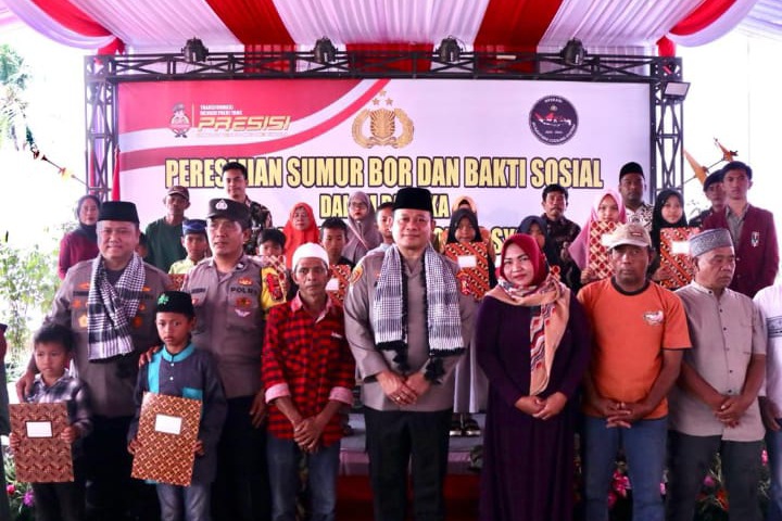 Warga Desa Panyingkiran, Kabupaten Ciamis bersukacita dengan adanya bantuan sumur bor dari Operasi Nusantara Cooling System (NCS) Polri 2023-2024. Di musim kemarau yang panjang ini, sebanyak 300 kepala keluarga (KK) bisa menikmati air bersih.