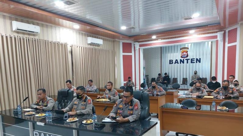 Dirbinmas Polda Banten Kombes Pol Sofwan Hermanto hadiri Video Conference (Vicon) yang diselenggarakan oleh Baharkam Polri di Ruang Vicon Polda Banten pada Rabu (11/05).