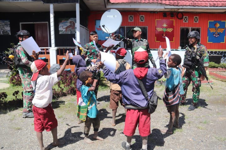 Satgas Pamtas Mobile Yonif Para Raider 330/Tri Dharma punya 1001 cara untuk membangkitkan minat dan motivasi belajar anak-anak yang duduk di bangku Sekolah Dasar (SD). Kali ini, para Ksatria Tri Dharma mengajak anak-anak untuk bermain asah otak berhadiah, bertempat di halaman Pos Mamba, Kab. Intan Jaya, Prov. Papua Tengah, pada Jumat (15/09/23).