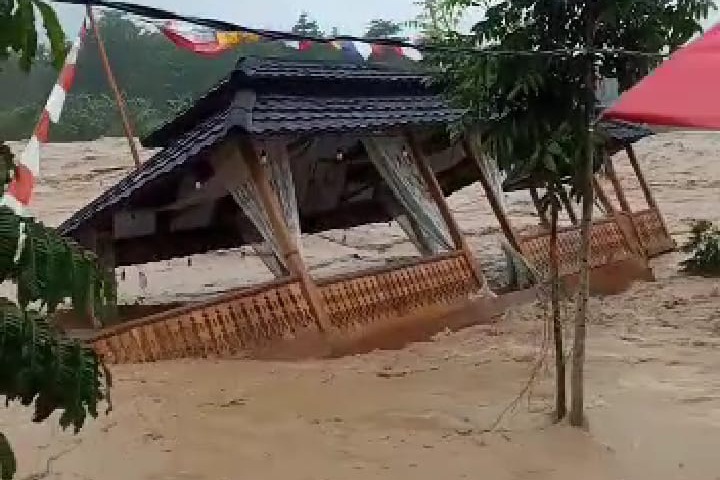 Bencana banjir bandang merendam sebanyak tiga desa di Kabupaten Lahat, Sumatera Selatan, dengan debit ketinggian air mencapai 1,5 meter, pada Kamis, 09/03/2023.
