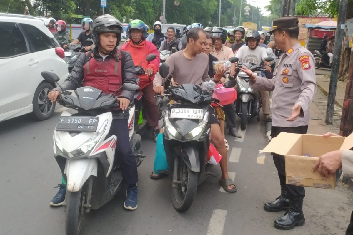 Kepolisian Sektor Ciracas kembali membagikan takzil buka puasa kepada warga, di Depan Kantor Polsek Ciracas Jl. Raya Bogor KM 21 Kel. Rambutan Kec. Ciracas Jakarta Timur, pada Jumat (05/04/2024).