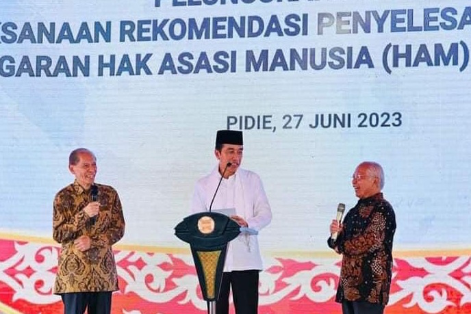 “(Saya) tidak bisa kembali (ke Indonesia) karena saya dicabut paspor,” ucap Suryo Martono saat berbincang dengan Presiden Joko Widodo dalam acara peluncuran program pelaksanaan rekomendasi penyelesaian non-yudisial pelanggaran Hak Asasi Manusia (HAM) berat di Rumoh Geudong, Kabupaten Pidie, Provinsi Aceh, pada Selasa, 27 Juni 2023.