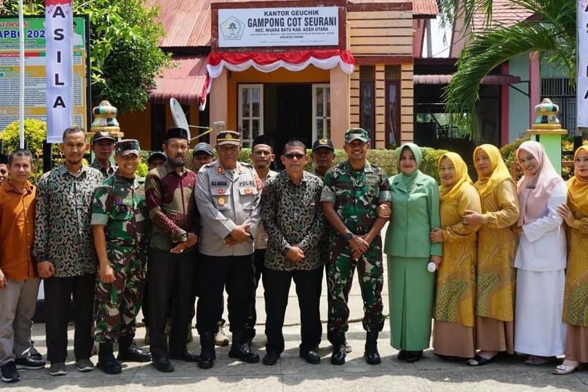 Dandim 0103/Aceh Utara Letkol Kav Makhyar S.T.,M.M.,M.H.I., didampingi Ketua Persit Kartika Chandra Kirana (KCK) Cabang XX Dim 0103 Aceh Utara Ny. Raena Maidelsa Makhyar meninjau Kampung Pancasila Binaan Kodim 0103/Aceh Utara bertempat di desa Cot Seurani, Kecamatan Muara Batu, kabupaten Aceh Utara, Jumat (02/08/2024).