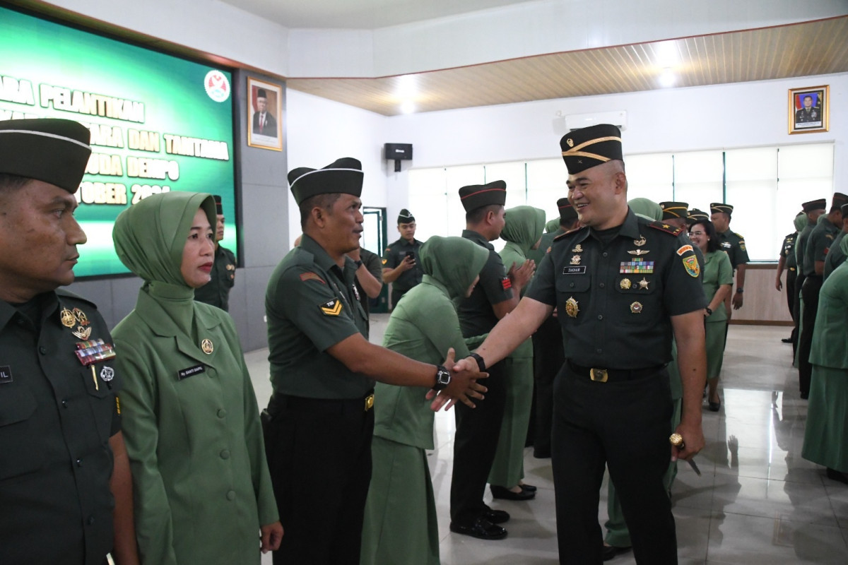 Danrem 044/Gapo Brigjen TNI Muhammad Thohir, S.Sos., M.M memimpin acara pelantikan kenaikan pangkat Bintara dan Tamtama Periode 1-10-2024, bertempat di Aula Makorem 044/Gapo Jl. Jenderal Sudirman Km. 4 Kota Palembang, Rabu (02/10/2024).