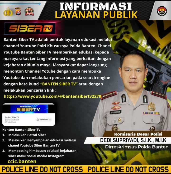Dalam rangka meningkatkan layanan kepolisian bagi masyarakat, Ditreskrimsus Polda Banten meluncurkan Banten Siber TV. Ditreskrimsus Polda Banten Kombes Pol Dedi Supriyadi menjelaskan jika Banten Siber TV adalah bentuk layanan edukasi melalui channel Youtube.