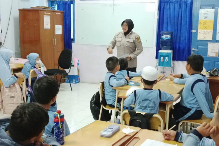Kasi Humas Polsek Jatinegara Aiptu Rina Fitri Pero mengatakan, kedatangan dirinya ke sekolah itu atas undangan dari sekolah SDIT Nurul Iman Pondok Bambu Duren Sawit Jakarta Timur, yang kebetulan cucunya juga bersekolah di tempat tersebut.