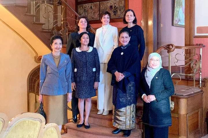 Ibu Iriana Joko Widodo bersama beberapa pendamping pemimpin yang menghadiri KTT Peringatan 45 Tahun ASEAN-Uni Eropa mengunjungi Museum Horta, Brussels, pada Rabu, 14 Desember 2022.