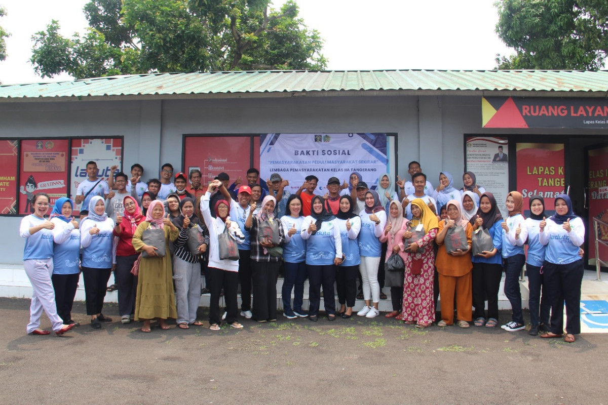 Lembaga Pemasyarakatan (Lapas) Kelas IIA Tangerang Kantor Wilayah Kemenkumham Banten kembali melaksanakan rangkaian Pemasyarakatan peduli dan implementasi akan Program 100 Hari Menteri Imigrasi dan Pemasyarakatan yaitu giat Pemberian Bantuan Sosial kepada Keluarga Warga Binaan Pemasyarakatan dan Masyarakat sekitar, pada Minggu (10/11/2024).
