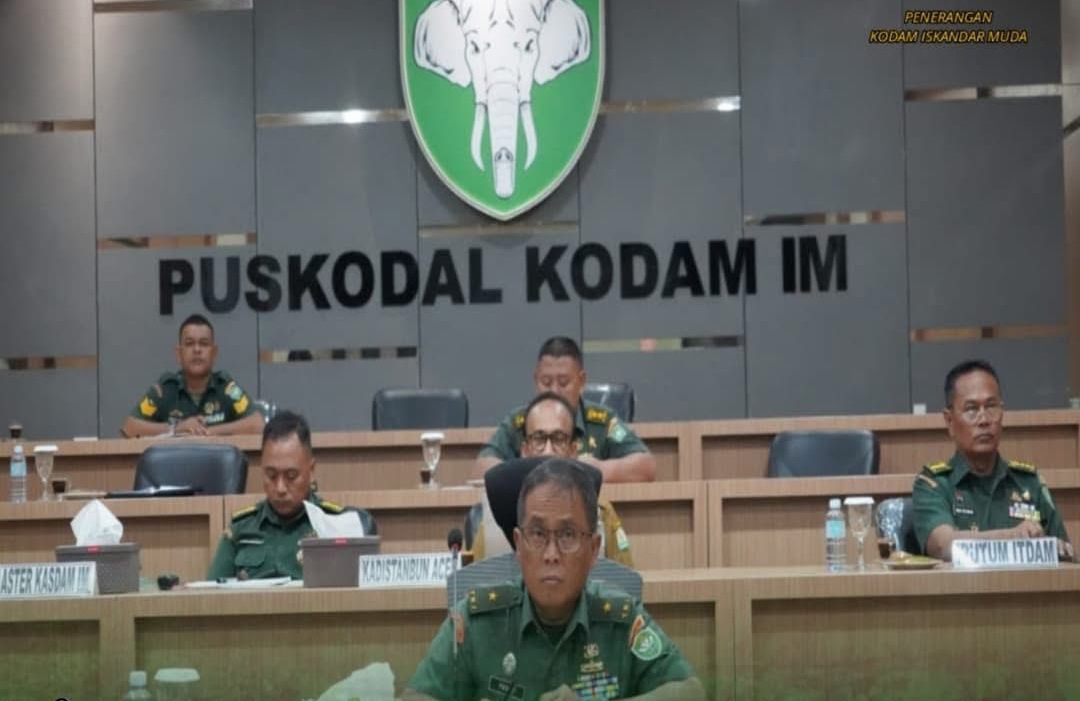 Inspektur Komando Daerah Militer Iskandar Muda (Irdam IM), Brigjen TNI Yudi Yulistyanto, M.A., mengikuti Video Conference (Vicon) yang dipimpin oleh Wakil Asisten Teritorial Kepala Staf Angkatan Darat Bidang Perlawanan Wilayah dan Kerja Sama Teritorial (Waaster Kasad Bid. Wanmil Kermater), Brigjen TNI Heri Susanto. Rapat evaluasi ini membahas pencapaian dan kendala dalam program optimalisasi lahan, serta langkah strategis untuk meningkatkan keberhasilan program tersebut. Kegiatan berlangsung di Ruang Puskodal Makodam IM, Senin (02/12/2024).
