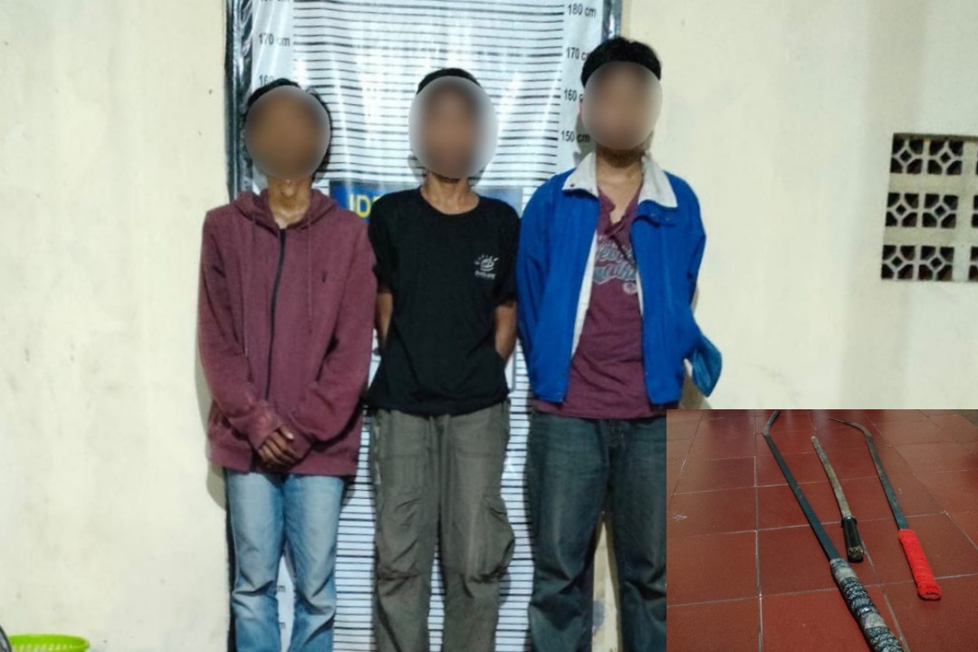 Telah diamankan 3 (tiga) orang remaja berikut barang bukti Sajam yang akan digunakan untuk tawuran.