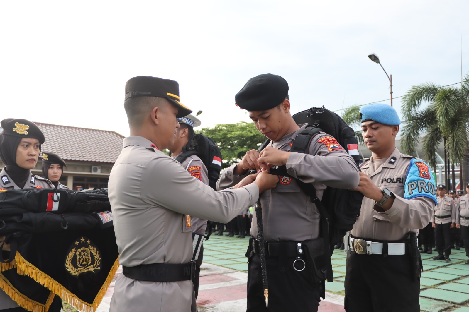 Kapolres Purworejo AKBP. Eko Sunaryo, SIK.M.K.P cek kesiapan personel yang ditugaskan melakukan pengamanan di TPS wilayah kabupaten Purworejo, Selasa (06/02) di halaman Mapolres Purworejo.