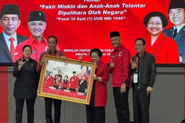Dalam konferensi pers, Jokowi didampingi Ketum PDIP Megawati Soekarnoputri, Ketua DPP PDIP Prananda Prabowo dan Puan Maharani, serta capres PDIP Ganjar Pranowo.