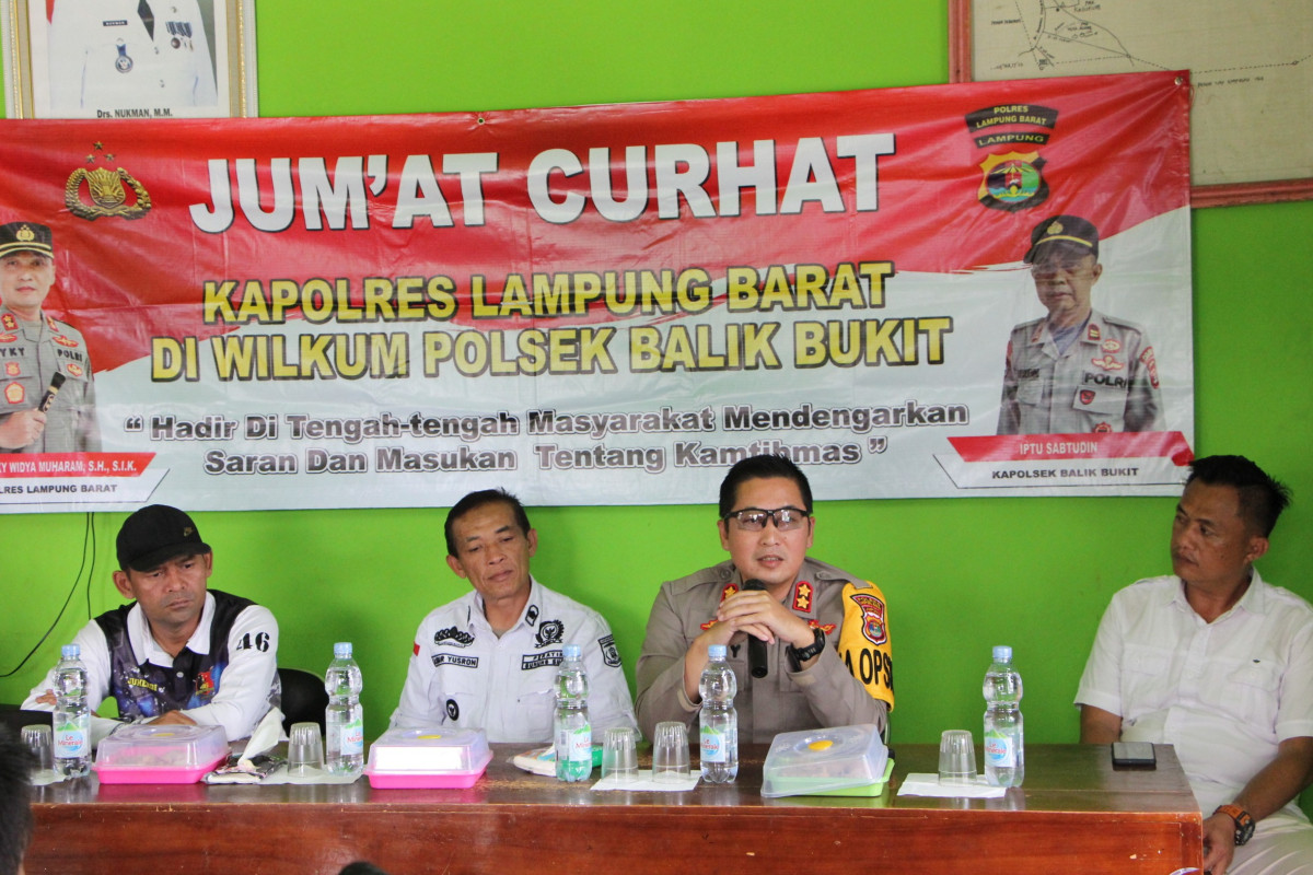 Melalui jum’at curhat ini diharapkan lebih mendekatkan Polres Lampung Barat dengan masyarakat dan dapat menampung masukan atau keluhan dari masyarakat yang tujuannya untuk menciptakan keamanan dan ketertiban dalam masyarakat.