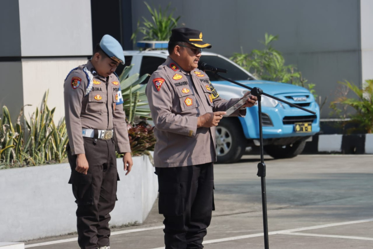 Kabagop Polresta Tangerang Kompol Kosasih pimpin apel pagi di Lapangan Apel Polresta Tangerang, Selasa (16/5/2024).