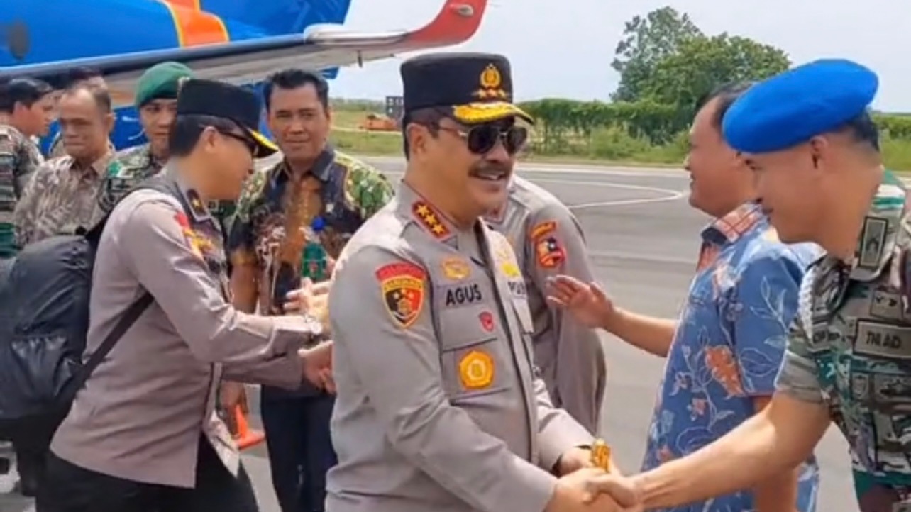 Arief bersama Forkopimda menyambut kedatangan para Jendral di Bandara Ngloram. Informasi dihimpun, Kabareskrim Polri Komjen. Pol. Drs. Agus Andrianto ada beberapa agenda di Kabupaten Blora.