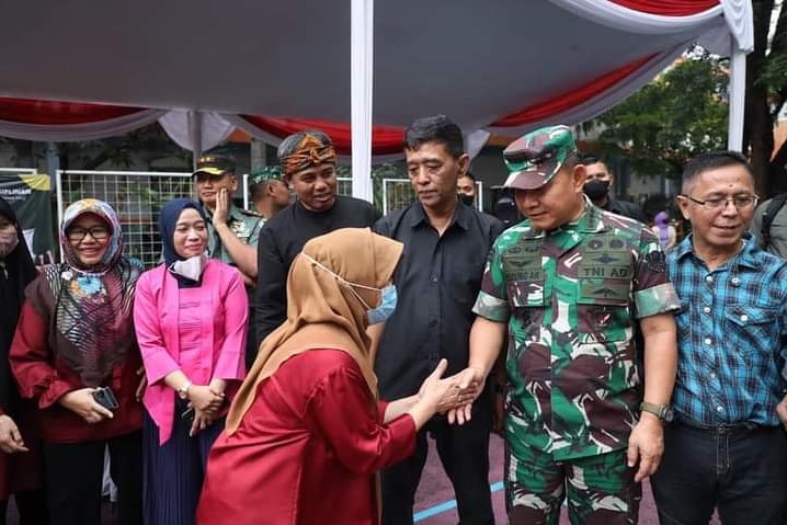 Kepala Staf Angkatan Darat (Kasad) Jenderal TNI Dr. Dudung Abdurachman meninjau progres pembangunan “Masjid Abdurahman” yang dibangun di lingkungan Sekolah Dasar (SD) dan Sekolah Menengah Pertama (SMP) milik Yayasan Kartika Cabang XIX Siliwangi, Bandung, Jawa Barat, Kamis (8/9/2022).