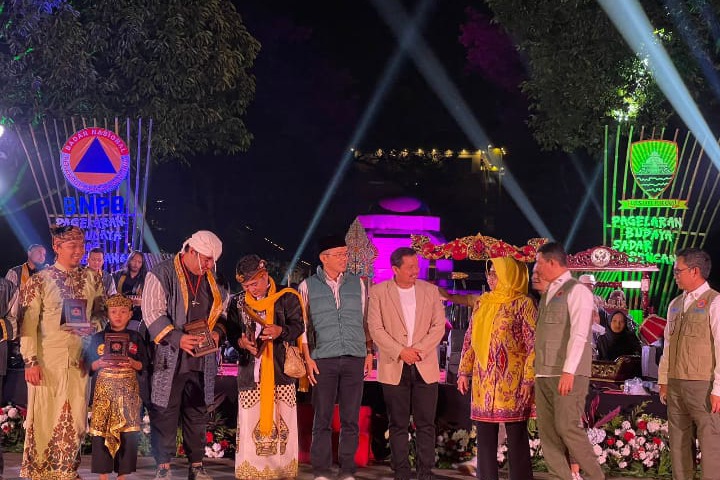 Kiai Maman dalam sambutannya mengungkapkan apresiasinya atas inisiatif BNPB yang telah menggelar malam budaya sekaligus sosialisasi sadar bencana kepada masyarakat Sumedang.