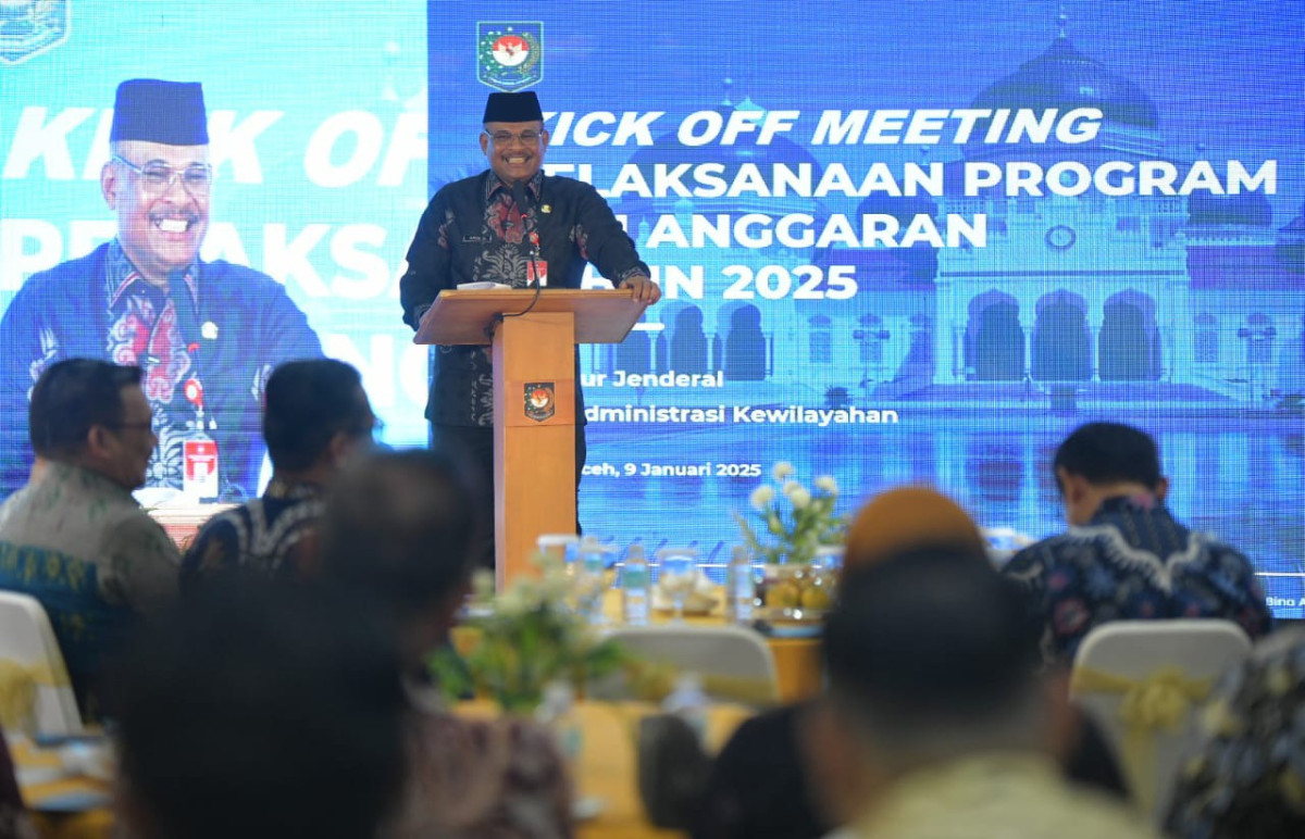 Direktorat Jenderal Bina Administrasi Kewilayahan Kementerian Dalam Negeri menyelenggarakan Kick-Off Meeting Pelaksanaan Program dan Anggaran Tahun 2025 di Banda Aceh, Kamis (9/1/2025). Acara ini dihadiri oleh Pimpinan Unit Kerja Eselon (UKE) II, Para Pejabat Administrator, Pejabat Pengawas, Pejabat Fungsional, Pelaksana di lingkungan Ditjen Bina Administrasi Kewilayahan serta perwakilan Satker Dekonsentrasi pada Pemerintah Aceh.