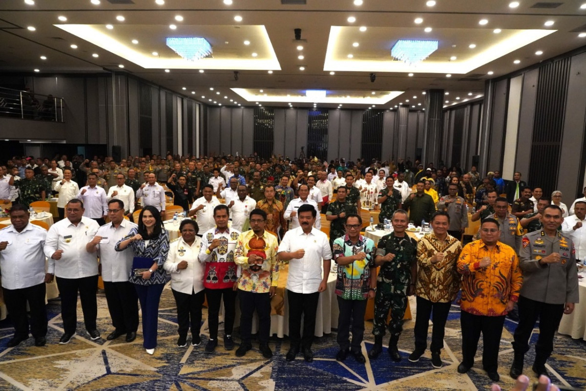 Pangkogabwilhan III Letjen TNI Richard T.H Tampubolon, S.H., M.M., mewakili Panglima TNI sebagai Narasumber Rapat Koordinasi Kesiapan Pilkada Serentak tahun 2024 khususnya di Wilayah Papua yang diselenggarakan Kementerian Koordinator Politik Hukum dan Keamanan (Kemenko Polhukam) bertempat di Hotel Aston Jayapura, Papua, Rabu (29/5/2024).