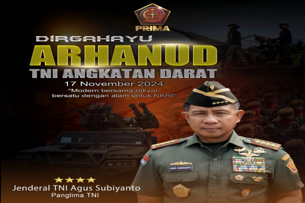 Panglima Tentara Nasional Indonesia (TNI) Jenderal TNI Agus Subiyanto mengucapkan selamat ulang tahun kepada Korps Artileri Pertahanan Udara (Arhanud) TNI Angkatan Darat yang merayakan hari jadinya pada 17 November 2024.