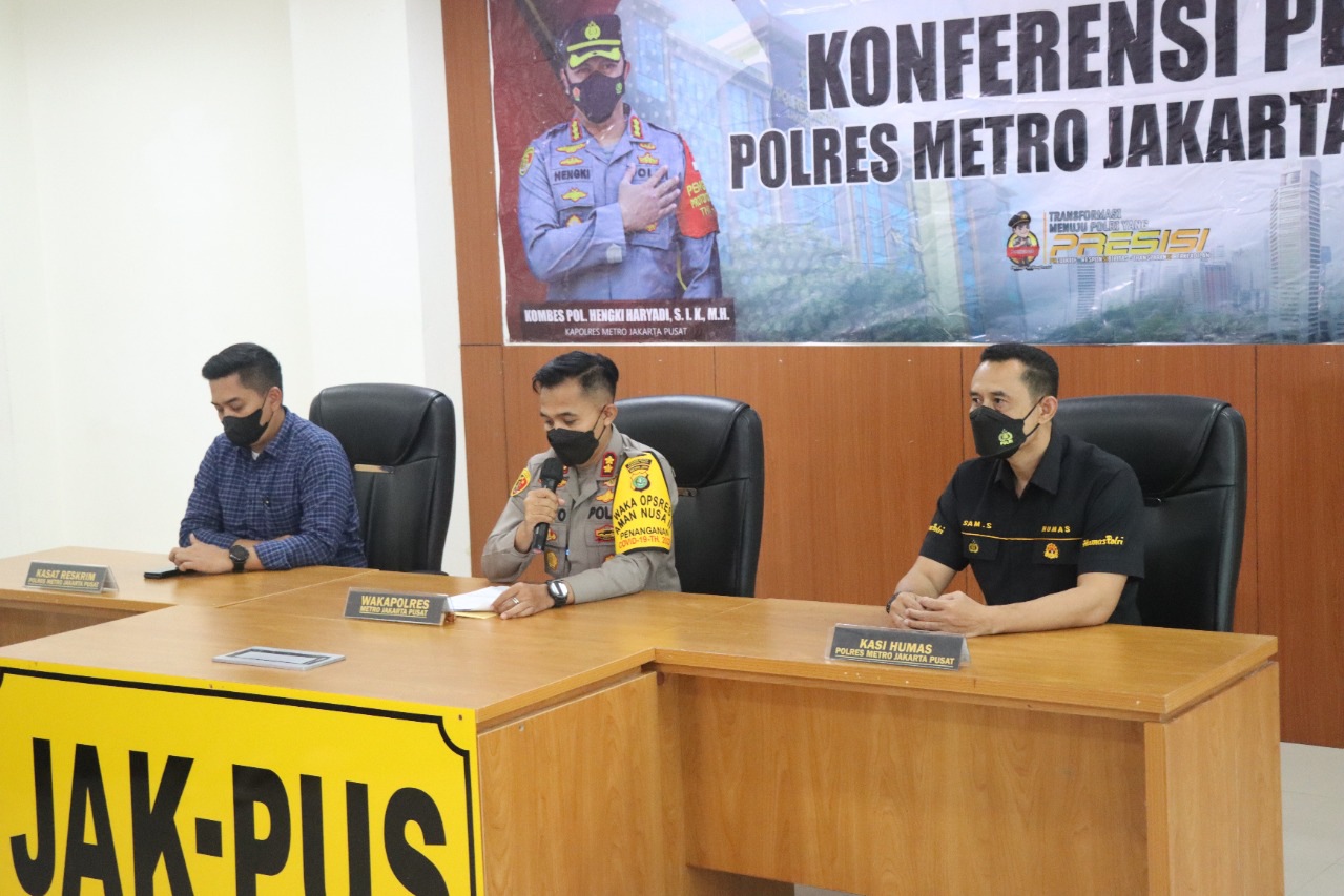 Hal tersebut disampaikan oleh Wakapolres Metro Jakarta Pusat AKBP. Setyo K Heriyatno saat jumpa pers di Polres Metro Jakarta Pusat, Selasa (12/04/2022).