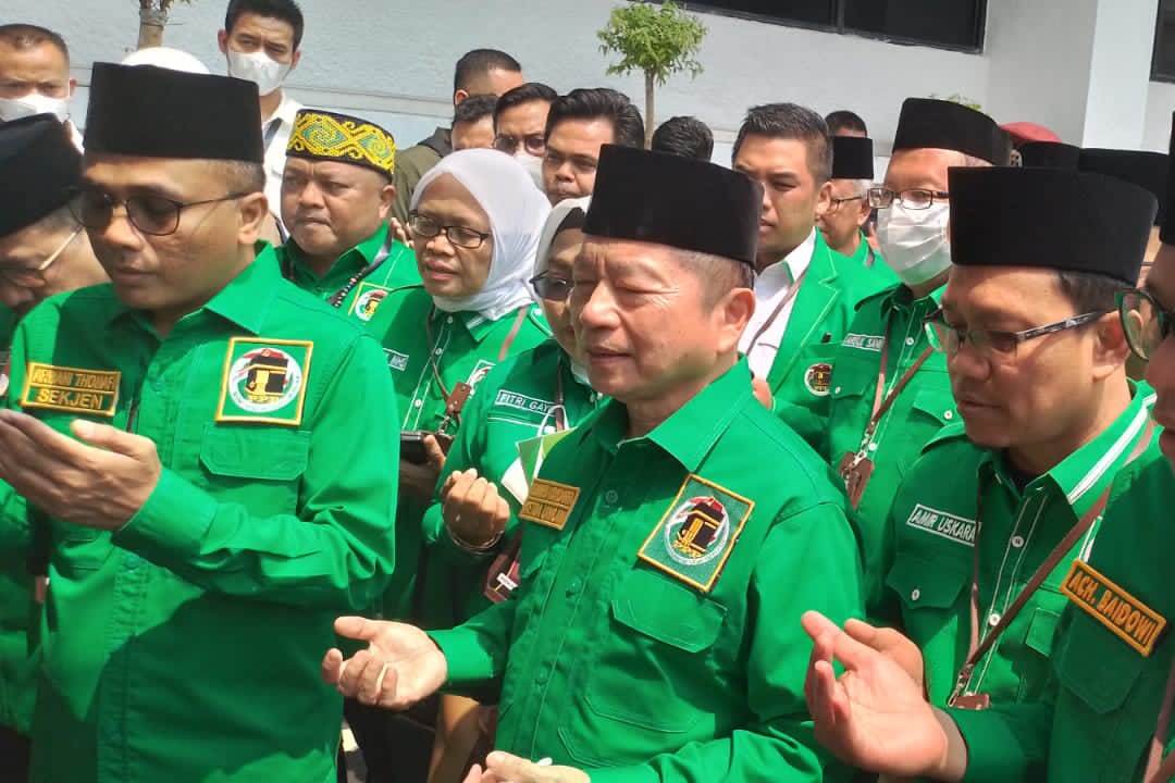 Berdasarkan pantauan Kantor Berita Politik RMOL di lobi Kantor KPU RI, Jalan Imam Bonjol, Menteng, Jakarta Pusat, Rabu (10/8), Ketua Umum (Ketum) PPP Suharso Monoarfa hadir bersama sejumlah pengurus DPP PPP seperti Sekjen Arwani Thomafi, Waketum Arsul Sani, hingga Ketua DPP Ahmad Baidowi.