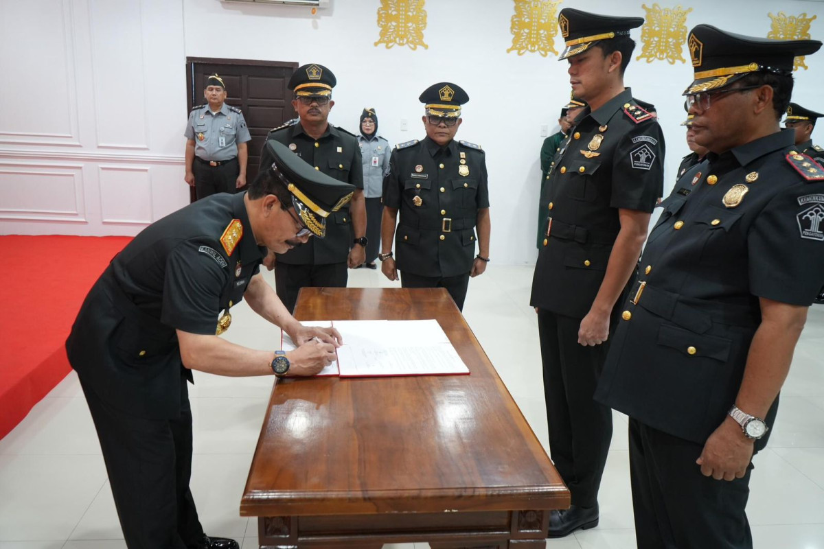 Kantor Wilayah Kementerian Hukum dan Hak Asasi Manusia Aceh melantik 14 pejabat manajerial dan non manajerial pada UPT Keimigrasian. Pelantikan dan pengambilan sumpah jabatan dipimpin langsung oleh Kepala Kantor Wilayah Kemenkumham Aceh, Meurah Budiman di Aula Bangsal Garuda, pada Senin 10/06/2024.