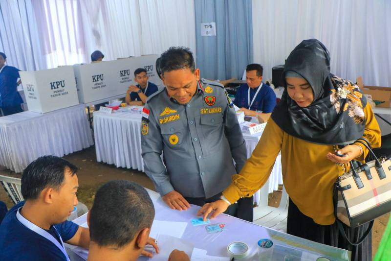Penjabat Wali Kota Tangerang Dr. Nurdin beserta istri dan anak-anaknya menggunakan hak pilihnya pada Pemilihan Umum (Pemilu) 2024 di TPS 81, Kelurahan Kalisari, Pasar Rebo, Jakarta Timur, Rabu (14/02/24).