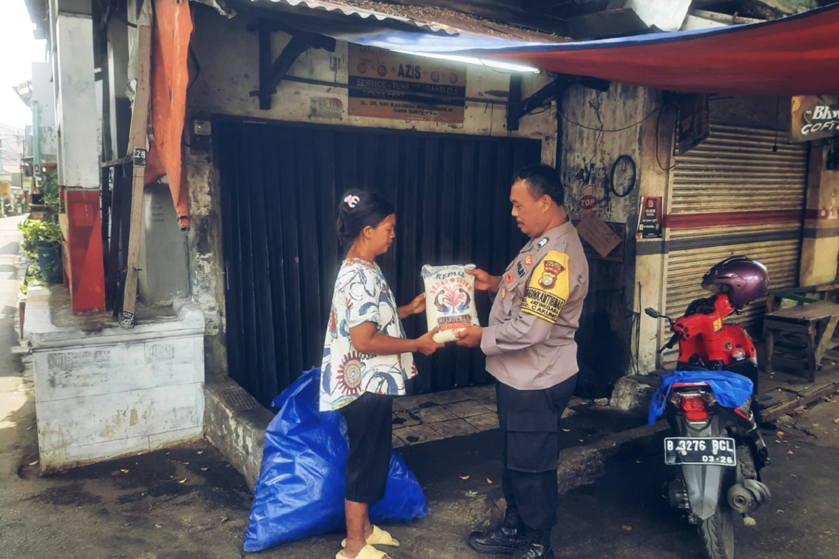 Bhabinkamtibmas Polsek Cakung Polres Metr Jakarta Timur Aiptu Kartono memberikan bantuan sembako kepada warga yang membutuhkan. Kamis (14/11/2024).