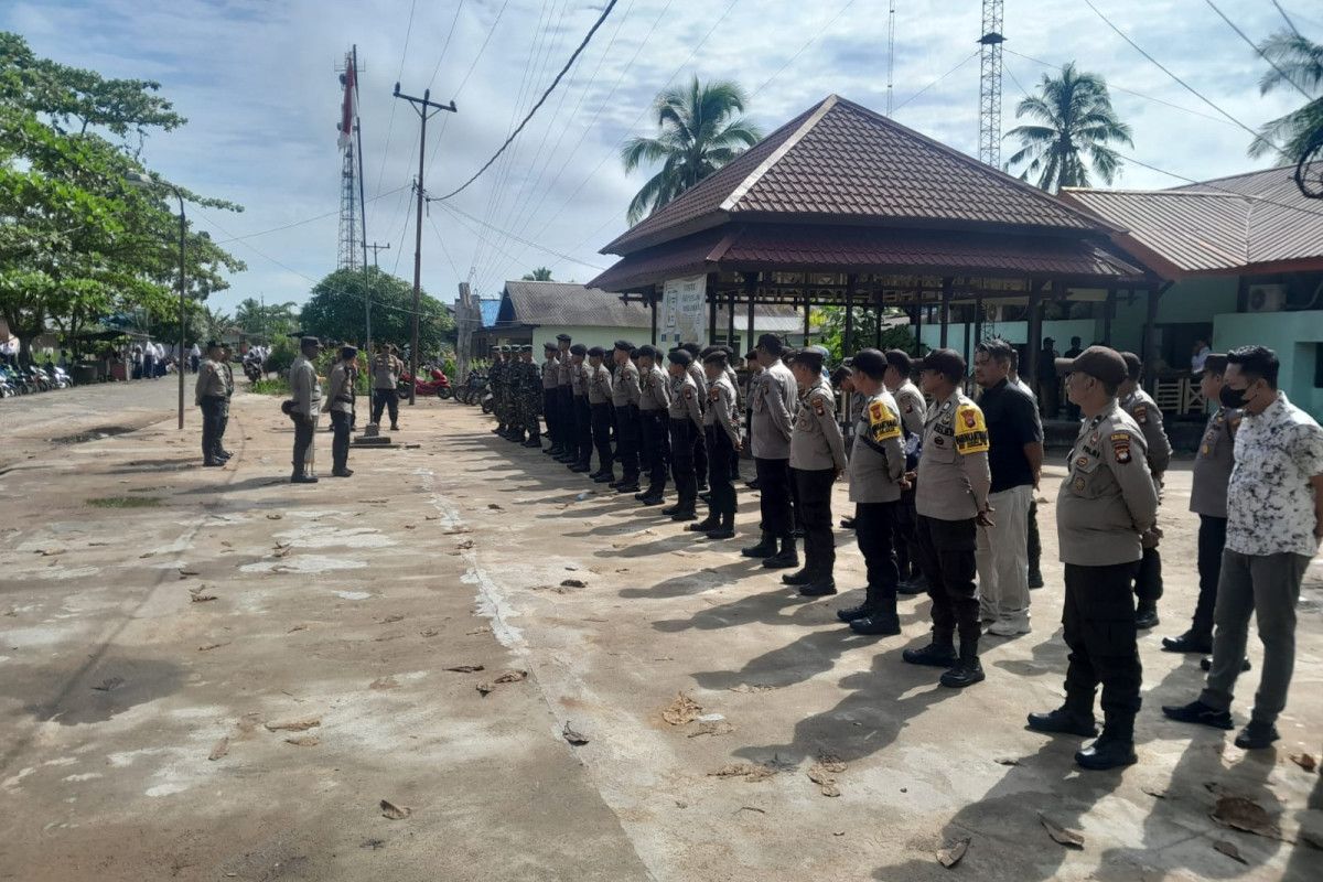 Personel gabungan Polsek Kubu jajaran Polres Kubu Raya dan Personil Koramil 1207-09/ Kubu melaksanakan pengamanan ketat terhadap kegiatan rapat Pleno Terbuka dan penetapan hasil penghitungan perolehan suara Pemilu tahun 2024 tingkat Kecamatan Kubu Kabupaten Kubu Raya. Senin (26/2/2024).