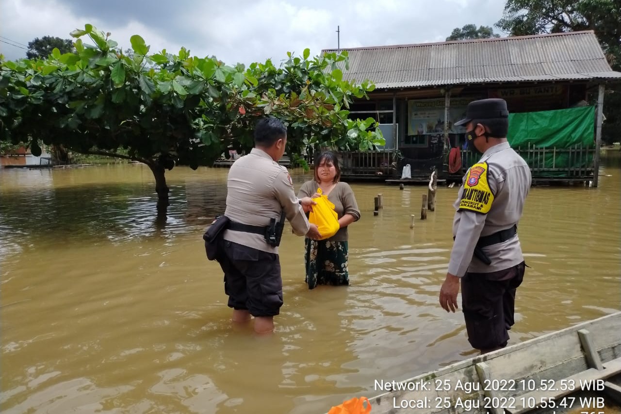 Kamis tanggal 25 Agustus 2022 pukul 09.00 WIB, Personil Kepolisian Sektor (Polsek) Arut Utara Kepolisian Resor Kotawaringin Barat dipimpin Kapolsek IPDA Agung S, SH, melakukan pengecekan ketinggian aliran luapan air banjir di jalan Macan Tali Kelurahan Pangkut RT 01 Pangkut Seberang dan beberapa Desa di wilayah Kecamatan Arut Utara.