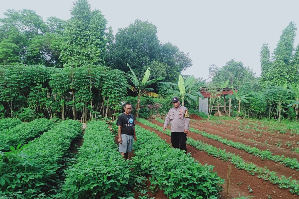 Bhabinkamtibmas Kelurahan Susukan Aiptu Yatman, mengunjungi lahan pertanian yang dikelola Poktan di Jalan Masjid RT 011/RW 07 Kelurahan Susukan Kecamatan Ciracas Jakarta Timur.
