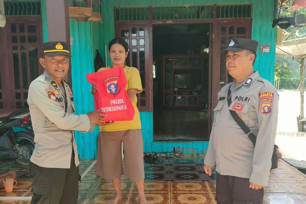 Polsek Kotawaringin Lama (Kolam) jajaran Polres Kotawaringin Barat (Kobar) memberikan bantuan sosial kepada warga Kec. Kolam, Senin (21/10/2024) siang.