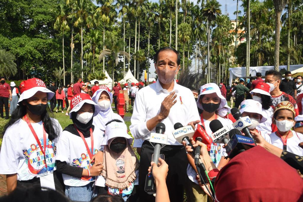 Presiden Joko Widodo menghadiri acara peringatan Hari Anak Nasional yang digelar di Kebun Raya Bogor, Jawa Barat, pada Sabtu, 23 Juli 2022. Dalam kesempatan tersebut, Presiden mengaku senang dapat bisa berinteraksi dan melihat keceriaan dan keaktifan anak-anak yang menunjukkan kreativitasnya.