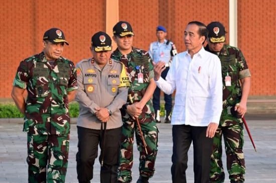 Tampak melepas keberangkatan Presiden di Pangkalan TNI AU Halim Perdanakusuma yaitu Pangdam Jaya Mayjen TNI Mohamad Hasan, Kapolda Metro Jaya Irjen Pol. Karyoto, Pangkoopsud I Marsda TNI Mohammad Nurdin, dan Danlanud Halim Perdanakusuma Marsma TNI Destianto Nugroho Utomo.