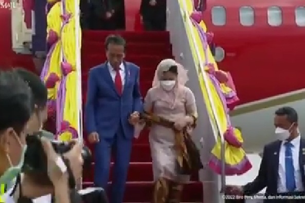 Presiden Joko Widodo dan Ibu Iriana Joko Widodo tiba di Bandar Udara Suvarnabhumi, Bangkok, Thailand, Kamis, 17 November 2022. Setelah menempuh penerbangan selama hampir empat jam, pesawat kepresidenan yang membawa Kepala Negara dan rombongan tiba sekitar pukul 15.55 waktu setempat.
