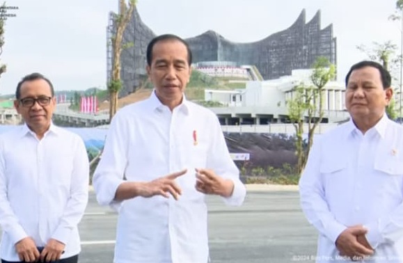 Mengawali kegiatan di Ibu Kota Nusantara (IKN), Kabupaten Penajam Paser Utara, Provinsi Kalimantan Timur, pada Senin pagi, 12 Agustus 2024, Presiden Joko Widodo (Jokowi) didampingi Menteri Pertahanan (Menhan) yang juga Presiden terpilih 2024-2029 Prabowo Subianto meninjau langsung progres pembangunan IKN. Keduanya berjalan bersama-sama melihat sejumlah infrastruktur yang sedang dibangun dan berhenti sejenak di area Grande untuk mendapatkan gambaran lebih jelas tentang perkembangan proyek tersebut.