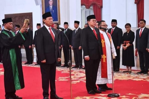 Selanjutnya, Presiden Jokowi mengambil sumpah jabatan Djan Faridz dan Gandi Sulistiyanto sebagai anggota Wantimpres.