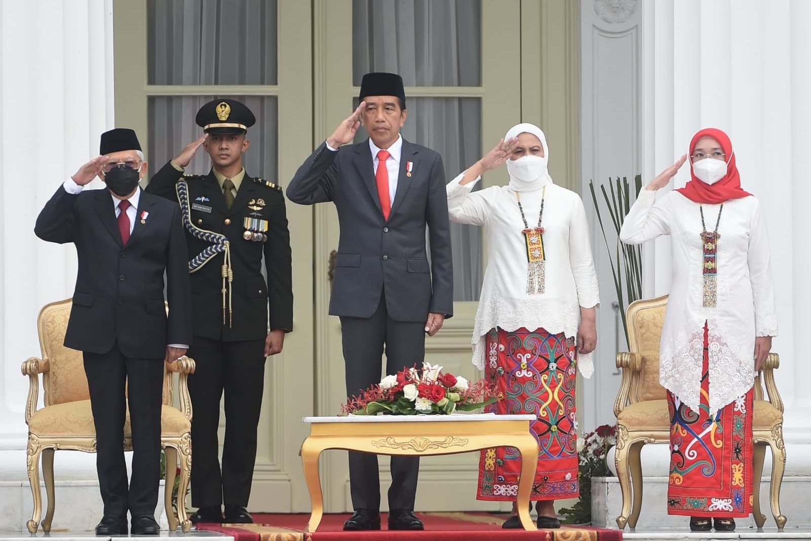 Turut hadir dalam upacara tersebut yaitu Presiden ke-5 Republik Indonesia Megawati Soekarnoputri, Ketua MPR RI Bambang Soesatyo, Ketua DPR RI Puan Maharani, Ketua Mahkamah Agung RI Syarifuddin, Ketua BPK RI Isma Yatun, Ketua Komisi Yudisial RI Mukti Fajar Nur Dewata, Menteri Koordinator Bidang Politik, Hukum, dan Keamanan Mahfud Md., Menteri Pertahanan Prabowo Subianto, Sekretaris Kabinet Pramono Anung, Kepala Staf Kepresidenan Moeldoko.