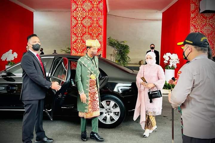 Presiden Joko Widodo beserta Ibu Iriana Joko Widodo tiba di Ruang Rapat Paripurna, Gedung Nusantara MPR/DPR/DPD RI, Jakarta, pada Selasa, 16 Agustus 2022. Presiden dan Ibu Iriana tiba sekitar pukul 09.30 WIB dan bersama-sama dengan Wakil Presiden Ma’ruf Amin serta Ibu Wury Ma’ruf Amin memasuki Gedung Nusantara.