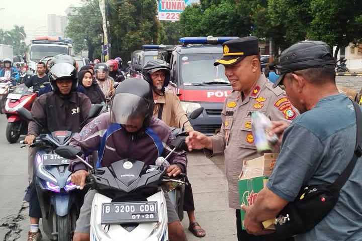 Wujud kepedulian terhadap sesama di bulan suci Ramadhan 1445 Hijriah, Jajaran personel Polsek Jatiuwung Polres Metro Tangeeang Kota gelar kegiatan berbagi takjil kepada masyarakat dan penggunaan jalan, pada hari Selasa (04/03/2025) pukul 17:00wib.