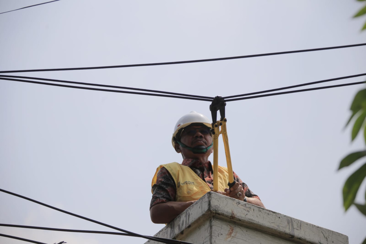 Langkah awal program ini dimulai di Jalan Lio Baru, Kecamatan Batuceper. Penataan ditandai dengan pemotongan kabel fiber optik (FO) secara simbolis oleh Wali Kota Tangerang, H. Sachrudin, Kamis (24/07/2025).