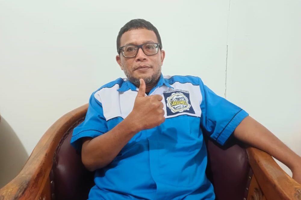 Rustam Syahrianto sebagai Ketua Serikat Buruh Muslim Indonesia (Sarbumusi) DPC Kota Balikpapan menerangkan kepada awak media berkaita pemindahan dan pembangunan IKN di Kabupaten Penajam Paser Utara Provinsi Kaltim.
